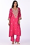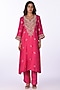 Featuring a pink kurta in raw silk and silk blend base with thread and zari embroidery. It is paired with bamberg satin pants and a viscose organza dupatta. Accentuate it with statement chandbali earrings and an embellished juttis for a refined ensemble, ideal for festive occasions.
