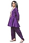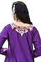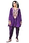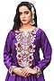 Featuring a purple A-line kurta in chanderi base, adorned with an embroidered yoke. It is paired with bamberg satin tulip dhoti. This ensemble is perfect for festive gatherings or wedding celebrations. Style it with mojaris and jhumkas to add some glamour to your look.