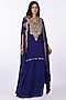 Featuring a purple cape style kurta in georgette blend base with embroidery and slit sleeves. It is paired with a flared skirt. Accentuate it with silver earrings and stiletto heels for a refined ensemble, ideal for sangeet ceremonies or festive gatherings.