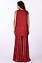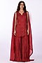 Featuring a red kurta in raw silk base with floral thread and sequins embroidery. It is paired with chinon crushed sharara pants and a viscose organza embellished cape. Accentuate it with statement chandbali earrings and an embellished juttis for a refined ensemble, ideal for festive wear, pooja or light celebrations.