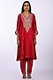 Red Natural Crepe & Silk Embroidered Kurta Set