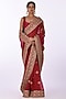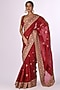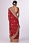 Featuring a red saree in organza base with floral embroidery. It is paired with an embroidered blouse. Accentuate it with statement chandbali earrings and embellished heels for a refined ensemble, ideal for sangeet ceremonies or festive occasions.