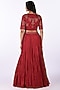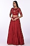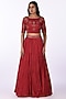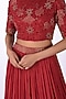 Featuring a red crop top in satin blend base with sequins and floral embroidery. It is paired with a pleated skirt having an embroidered waistband. Accentuate it with statement chandbali earrings and an embellished juttis for a refined ensemble, ideal for festive wear or wedding celebrations.