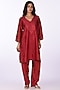 Featuring a red kurta in silk chanderi base with thread embroidery. It is paired with bamberg satin straight pants. Accentuate it with statement chandbali earrings and an embellished juttis for a refined ensemble, ideal for festive occasions.