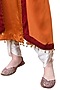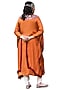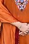 Featuring a rust kaftan in bamberg satin base, adorned with an embroidered yoke. It is paired with a contrasting bamberg satin dhoti. This ensemble is perfect for festive gatherings or wedding celebrations. Style it with mojaris and jhumkas to add some glamour to your look.