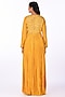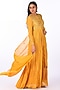 Featuring a yellow anarkali in crinkle silk blend base with zari and sequins embroidery. It is paired with an organza embroidered dupatta. Accentuate it with statement chandbali earrings and an embellished juttis for a refined ensemble, ideal for haldi ceremonies or festive occasions.