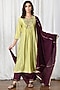 Featuring a mint green kurta in silk chanderi base with embroidery. It is paired with contrasting pants and a dupatta.