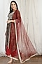 Featuring an olive green kurta in muslin base with digital print and embroidery. It is paired with contrasting red pants and a dupatta.