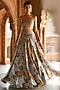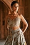 Featuring a grey lehenga in organza base with floral print, dori and zardosi embroidery. It is paired with a silk embroidered blouse having cutwork detail and an organza dupatta. Perfect for sangeet, and engagements to carnival festivities, for the contemporary bride and fashion-forward occasion wear.