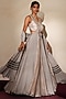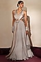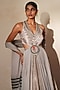 Featuring a metallic grey anarkali in organza, zari tissue and silk base with dori-marodi and jadau embroidery. It is paired with an organza dupatta. Perfect for wedding celebrations, festive soirees, or receptions, this ensemble redefines heritage elegance in a contemporary silhouette.