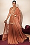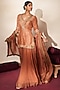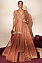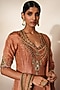 Featuring a metallic mocha kurta in silk base with 3D cutwork, dori-marodi and jadau hand embroidery. It is paired with organza sharara pants and a dupatta. Perfect for wedding festivities, engagement evenings, or festive gatherings, this ensemble reflects heritage luxury with a modern, luminous touch.