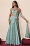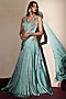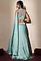 Featuring a metallic pastel blue pre-draped saree in organza and satin base with 3D cutwork motifs. It is paired with a satin and net hand embroidered blouse. Perfect for cocktail nights, receptions, or destination celebrations, this look captures the poetry of drape reimagined for today?s modern muse.