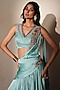 Metallic Pastel Blue Organza & Satin Pre-Draped Saree Set