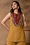 Featuring a mustard gold top in crepe base with floral butta print, dori and beads embroidery, including tassel detailing. It is paired with pants. Accentuate it with hoop earrings and block heels for a chic yet relaxed vibe, perfect for brunches, festive gatherings and casual celebrations.