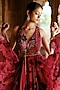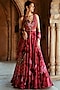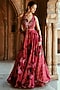 Featuring a pink anarkali in organza base with floral print and zardosi hand embroidery. It is paired with an embroidered dupatta. Perfect for Indian wedding functions like sangeet, or engagement, for the modern bride or bridesmaid seeking statement occasion wear.
