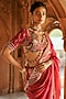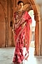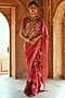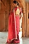 Featuring a pink saree in organza base floral print, zardosi, pitta and mirror embroidery. It is paired with a chanderi silk embroidered blouse and a satin underskirt. Perfect for Indian wedding functions like sangeet, or engagement, for the modern bride or bridesmaid seeking statement occasion wear.