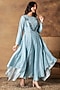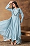 Powder Blue Chanderi Butta Printed Asymmetrical Kurta Set