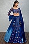 Featuring a tanzanite blue lehenga in organza and silk base with resham, cutdana, dabka, and sequins hand embroidery. It is paired with a matching blouse and chiffon dupatta.