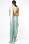Featuring a metallic blue pre-draped saree in knitted crepe base with attached petticoat. It is paired with a matching hand-embroidered bustier.