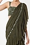 Olive Green Georgette & Lurex Hand Embroidered Ruffled Saree Set