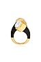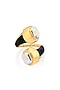 Featuring a gold finish wrapped ring studded with white abalone, set in brass.