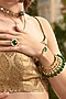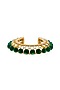 Featuring a gold finish cuff studded with mirror and green hydrostone, set in brass.