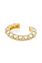 Featuring a gold finish cuff studded with mirror and pearls, set in brass.