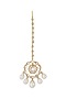 Featuring a gold finish maang tikka studded with pearls, set in brass.