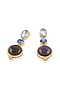 Featuring a pair of 18kt gold plated dangler earrings studded with blue crystal zircons and cabochon stones, set in brass. This jewellery elevates weddings, parties and festive looks, style it with embellished outfits and heels for a refined, glamorous finish.