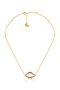 Featuring a 18kt gold plated enameled lip-shaped pendant necklace studded with crystal zirconia, set in brass. Add a touch of sparkle to your ensemble, perfect for evening soirees, date nights or cocktail parties.