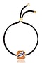 Featuring a 18kt gold plated pumpkin spice colored enameled bracelet studded with evil eye motif and crystal zirconia, set in brass and black cord thread. Perfect for Raksha Bandhan and can double as a stylish wrist accessory post-festival.