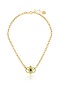 Featuring a 18kt gold plated pendant necklace studded with crystal zirconia, green synthetic stone and resin work, set in brass. Pair with a sleek jumpsuit for sundowners or stylish soirees.