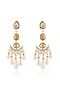 Featuring a pair of 18kt gold plated dangler earrings studded with crystal zirconia and pearls, set in brass. This jewellery elevates weddings, parties and festive looks, style it with embellished outfits and heels for a refined, glamorous finish.