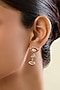 Featuring a pair of 18kt gold plated red enameled dangler earrings studded with crystal zirconia, set in brass. Add a touch of sparkle to your ensemble, perfect for evening soirees, date nights or cocktail parties.