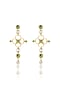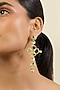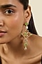 Featuring a pair of 18kt gold plated dangler earrings studded with green crystals and zircons, including resin work, set in brass. Pair with a sleek jumpsuit for sundowners or stylish soirees.