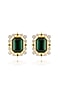 Gold Plated Green Crystal Zirconia Stone Stud Earrings