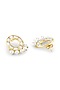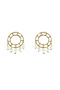 Featuring a pair of 18 kt gold plated hoop earrings studded with mirror and pearls, set in brass. Perfect wear for a festive occasion or a pooja ceremony.