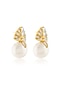 Featuring a pair of 18kt gold plated stud earrings studded with hand-cut mirrors, pearls and cubic zirconia, set in brass. It elevates weddings, parties, and festive looks. Style it with an embellished outfit and heels for a refined, glamorous finish.