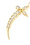 Featuring a pair of 18kt gold plated tennis sword dangler earrings studded with mirror, set in brass. Perfect wear for festive occasions, wedding ceremonies or for evening wear.