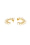 Featuring a pair of 18 kt gold plated hoop earrings studded with pearls, set in brass. These earrings are both traditional and contemporary outfits for a subtle pop of color. Perfect for festive occasions, casual outings, and everyday elegance.