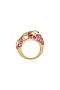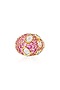 Featuring a 18kt gold plated ring studded with pink crystals and mirror, set in brass. Perfect wear for cocktail occasions, sangeet, festive or wedding ceremonies.