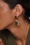 Featuring a pair of 18kt gold plated dangler earrings studded with pink jade and mirrors, set in brass.