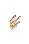 Featuring a 18kt gold plated ring studded with red crystals, set in brass. Perfect wear for cocktail occasions, sangeet, festive or wedding ceremonies.