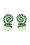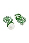 Featuring a pair of green stud earrings studded with CZ and pearls, set in brass.