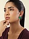 Featuring a pair of white rhodium finish heart stud earrings studded with crystal zircons and emerald green doublet stones, set in brass. Perfect for cocktail parties, social gatherings, or festive occasions.