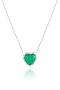 White Rhodium Finish Emerald Stone Heart-Shaped Pendant Necklace