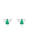 White Rhodium Finish Green Stone & Crystal Zirconia Stud Earrings