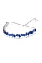 Featuring a white rhodium finish choker necklace studded with sapphire blue doublet stones, set in brass. Perfect for social gatherings, cocktail parties and festive occasions.