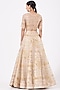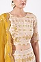 Featuring an off-white lehenga in organza base with mirror, cutdana, and thread embellishments. It is paired with a matching blouse and a mustard dupatta.