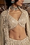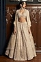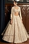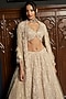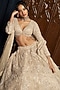 Featuring a beige lehenga in net base with sequins, cutdana and applique embroidery. It is paired with blouse and a dupatta. Accentuate it with statement jewellery and heels for a sangeet or wedding ceremony.